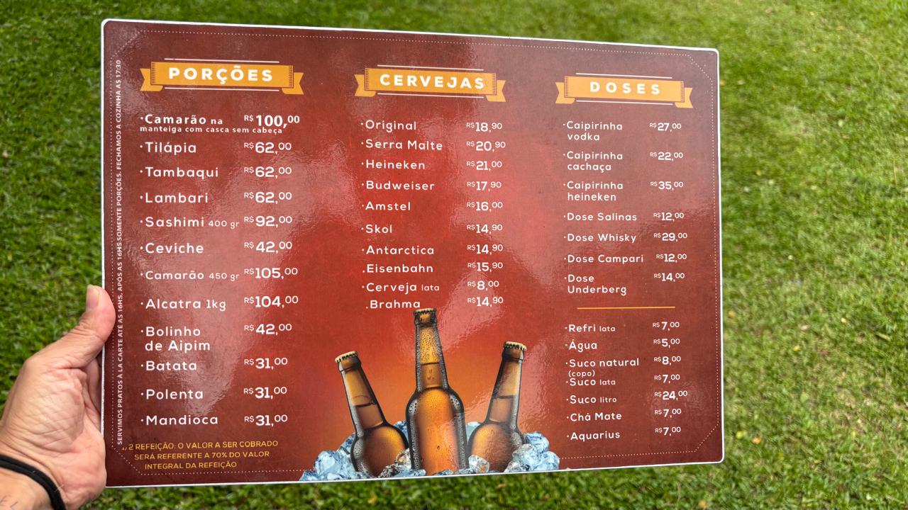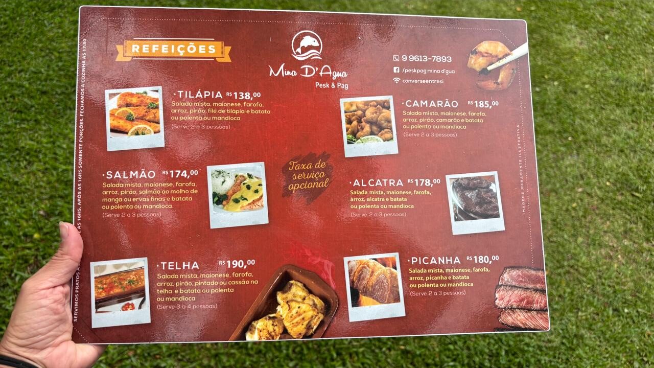 _ quanto: R$15 pesque e pague; peixe R$ 25 por quilo ou R$ 28 por quilo limpo